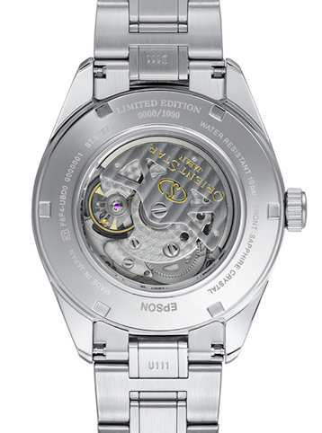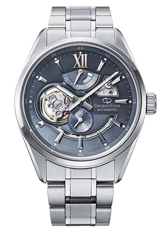 ORIENT STAR KESHIKI Limited Edition 1,000pcs Modern Skeleton RE-AV0132L Specifications Mechanical Movement : ORIENT caliber F6F44 Made in Japan Self-winding & Hand-winding movement 24 jewels 21600/hour vibrations Accuracy + 25 seconds to -15 seconds 50 hours Power reserve Second hand halt mechanism Stainless steel case Stainless steel Bracelet Sapphire crystal with anti-reflection coating Screw see-through caseback with Inorganic glass Water resistant to 10bar Case: 41 mm Lug side 21 mm Thickness 12mm Weight : 154g Dial: Dial: Blue grey gradation