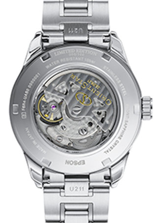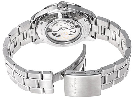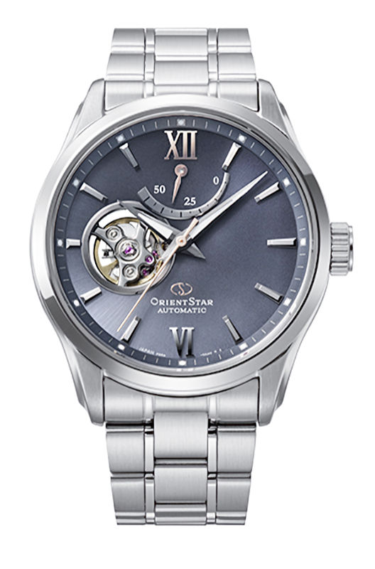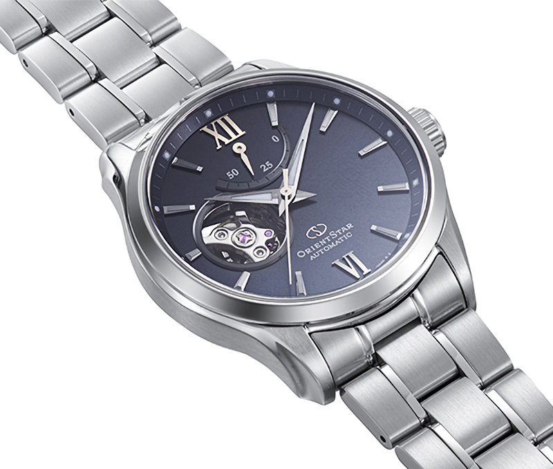 ORIENT STAR KESHIKI Limited Edition 900pcs Contemporary Open Heart RE-AT0021L Specifications Mechanical Movement : ORIENT caliber F6R42 Made in Japan Self-winding & Hand-winding movement 22 jewels 21600/hour vibrations Accuracy + 25 seconds to -15 seconds 50 hours Power reserve Second hand halt mechanism Stainless steel case Stainless steel Bracelet Sapphire crystal with anti-reflection coating Screw see-through caseback with Inorganic glass Water resistant to 10bar Case: 39.3 mm Lug side 20 mm Thickness 12.2 mm Weight : 149g Dial: Blue grey gradation