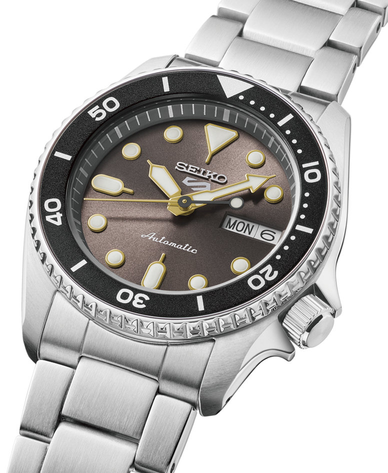 SEIKO 5 SKX Sports Style Mid Size Automatic SRPL79K1 Caliber: NEW 4R36 Automatic winding type with manual winding mechanism 24 Jewels Made in Japan Power Reserve : Approx. 41 hours A window at the 6 o'clock hour reveals the automatic day calendar. Screw case back See-through case back Serial number engraved on the case back Unidirectional rotating bezel Metal: Stainless steel Size: 38mm Thickness: 12.1mm Weight : 140g Band:Stainless steel bracelet